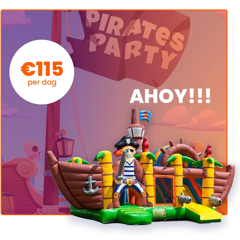 Een springkussen is van dik kunststof gemaakt en kan dus prima met een doek afgenomen worden. Daarnaast droogt een kussen snel als hij in de zon staat.Jazeker! Al onze springkussens zijn gekeurd en voorzien van een veiligheidscertificaat: NEN-14960 veiligheids- en kwaliteitsnorm.Een stroompunt voor de blower (een gewoon stopcontact volstaat), genoeg ruimte om het springkussen te plaatsen en een toezichthouder. De toezichthouder dient constant aanwezig te zijn, moet 18+, capabel en geinstrueerd te zijn en direct verbaal en/of fysiek te kunnen ingrijpen.Het springkussen kan zowel op een harde als zachte ondergrond staan. Het grondzeil, de ankers en de valmatten worden standaard meegeleverd.Dat is verschillend per springkussen. De Flamingo past in elke personenauto, mits de achterbanken plat kunnen. Houdt er wel rekening mee dat de valmatten, blower en ankers ook mee moeten waardoor het nogal krap kan worden. De Krokodil en het Piratenschip passen niet in elke personenauto, hiervoor heb je een (kleine) bestelwagen of kleine aanhangwagen nodig. Om deze springkussens af te halen dien je te komen met een (kleine) bestelwagen, zoals een type Caddy (of grotere bestelwagen) of een kleine aanhangwagen. Er is ook een aanhangwagen bij ons te huur, kosten: €44 per dag, vraag naar de voorwaarden.Nee een springkussen heeft een blower die ongeveer 1100 watt verbruikt per uur. Als je hem 8 uur laat aanstaan verbruikt hij zo’n 9 KW kwijt. Dit is ongeveer 2 euro.Geen schoenen, eten of drinken en niet meer personen tegelijk dan aangegeven, een toezichthouder moet er continu bij blijven. Verder: vooral genieten en lol maken!